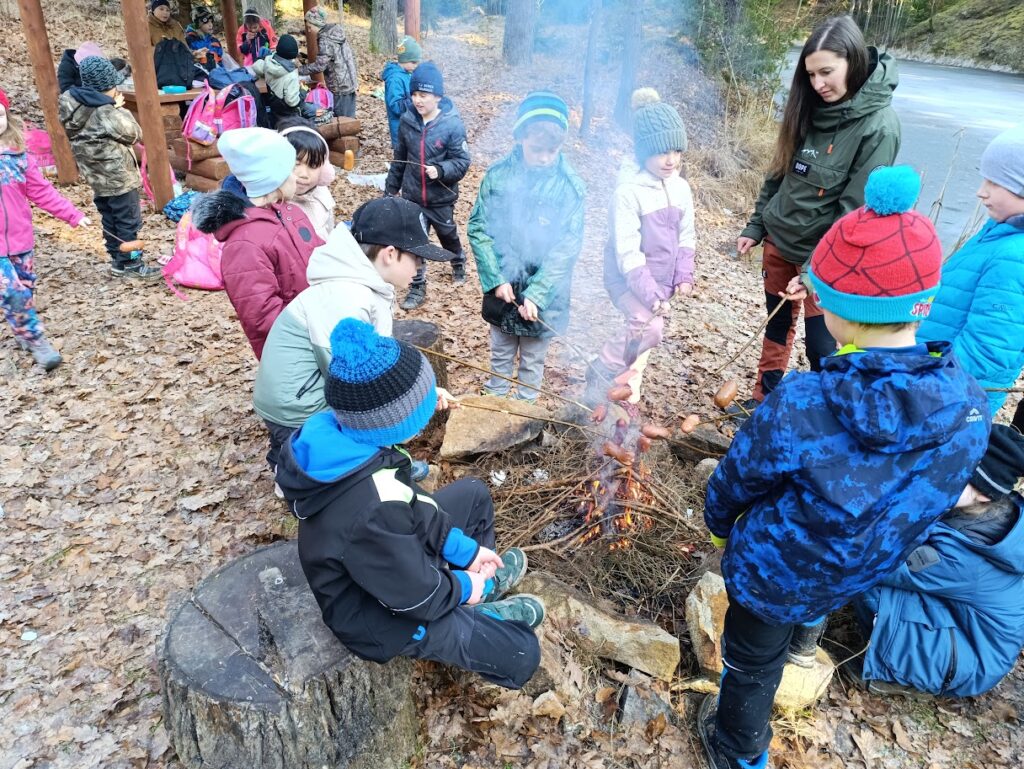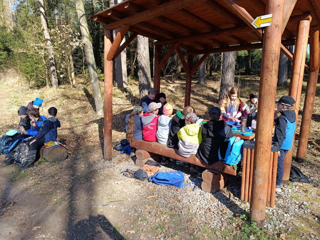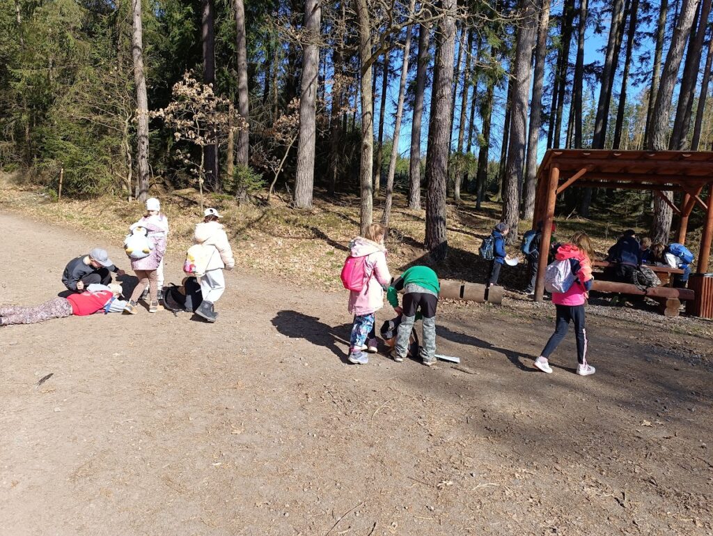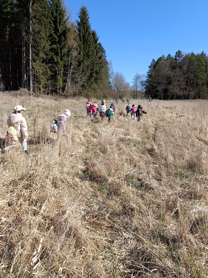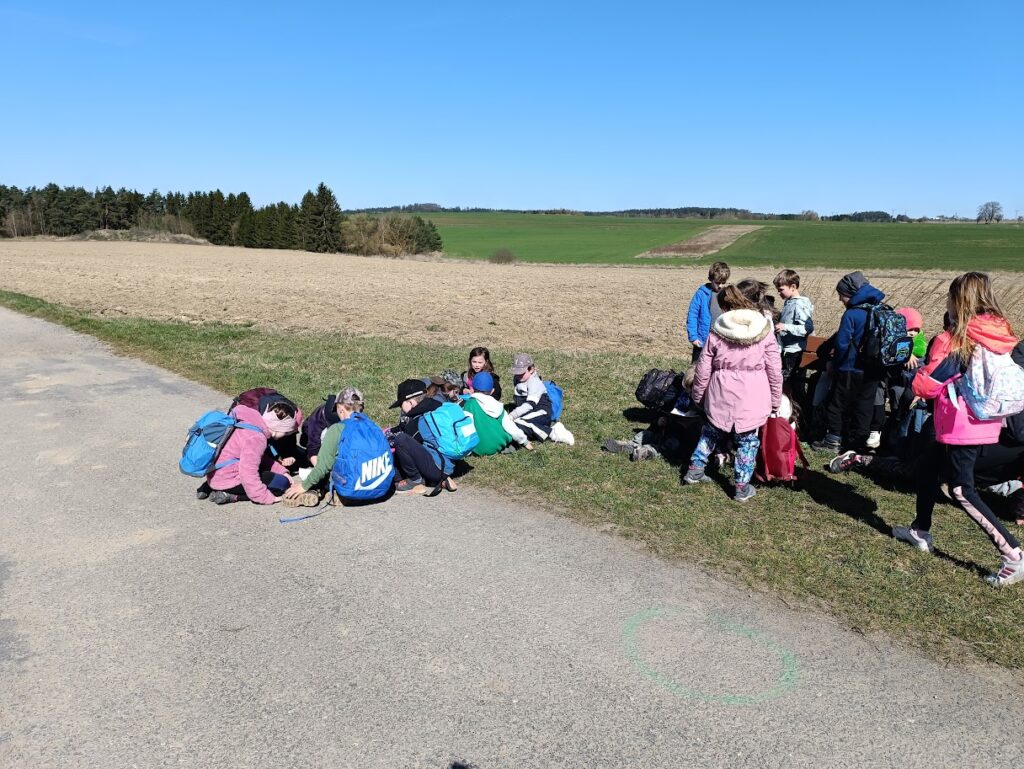 V letošním roce máme nové putování Od rybníka k rybníku. Již jsme podnikli dvě výpravy. První cesta vedla v březnu k Jezovitu, v dubnu jsme zkontrolovali Kášovku a Tomešín. Děti měly různé úkoly. Zkoumaly mechy, hledaly živočichy, zakreslovaly do mapy naše putování. Na výpravách nás doprovázelo sluníčko.