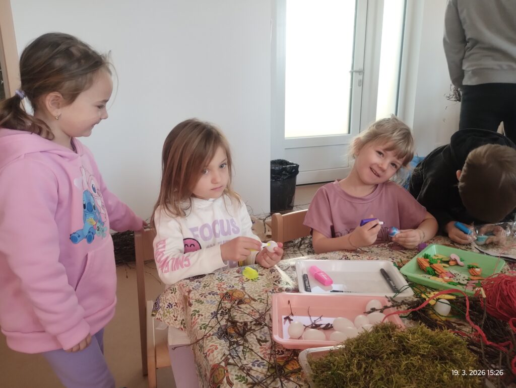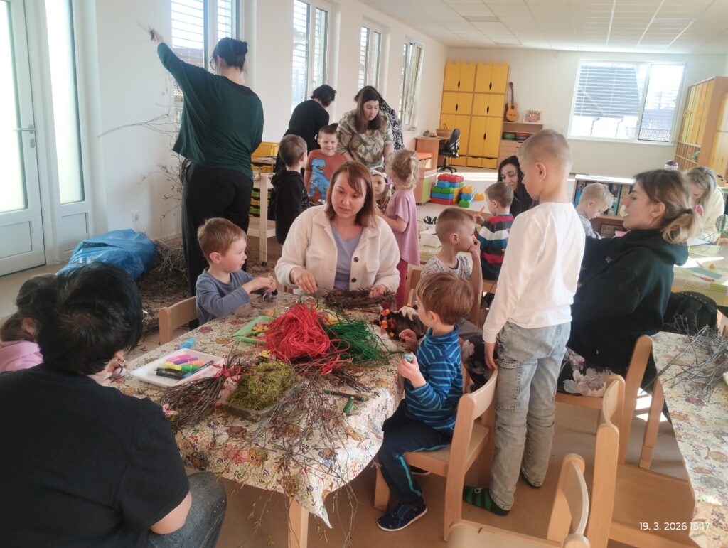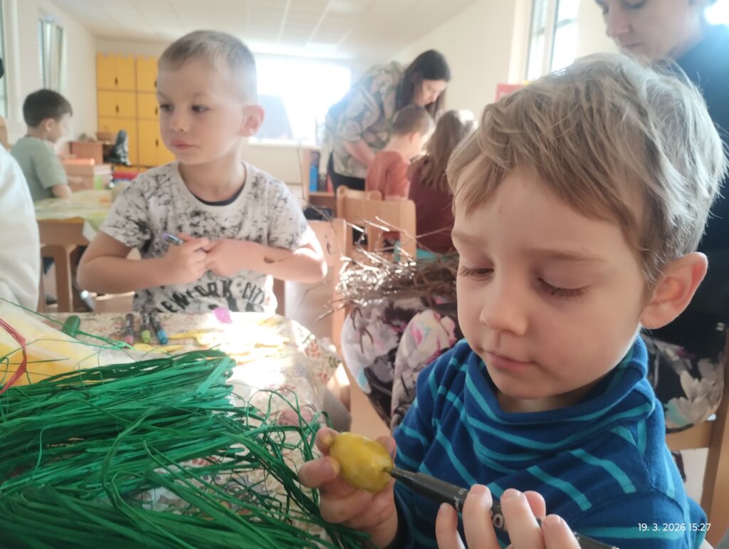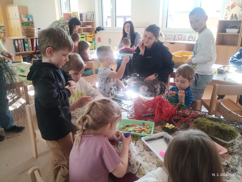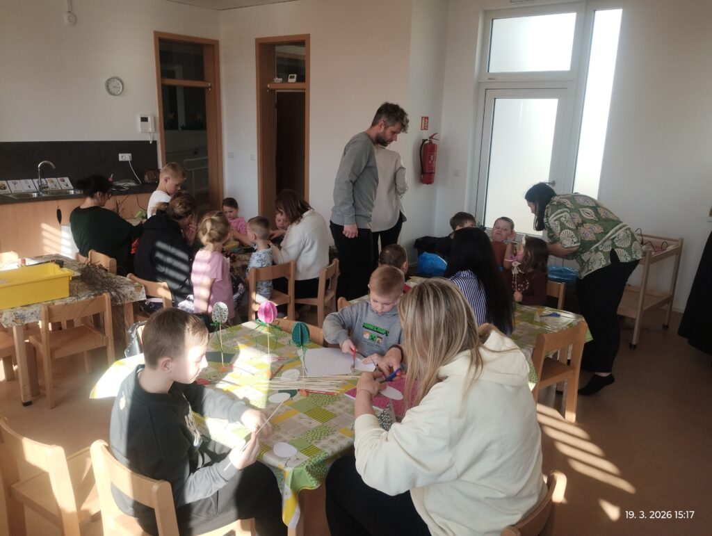 Ve středu 19. března odpoledne se naše třída Včeliček proměnila v tvořivou jarní dílničku. K předvelikonočnímu vyrábění jsme pozvali nejen děti, ale i jejich rodiče.