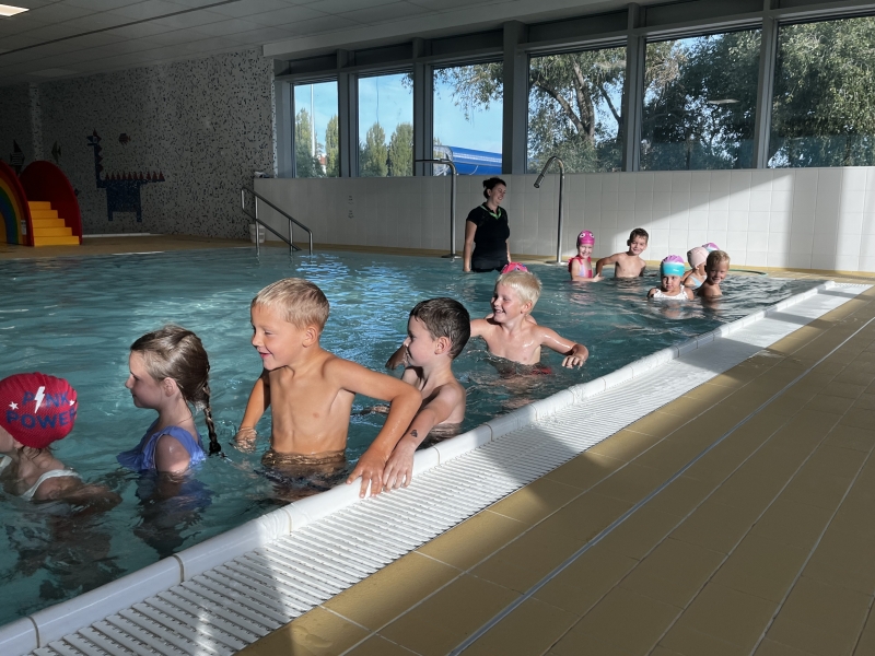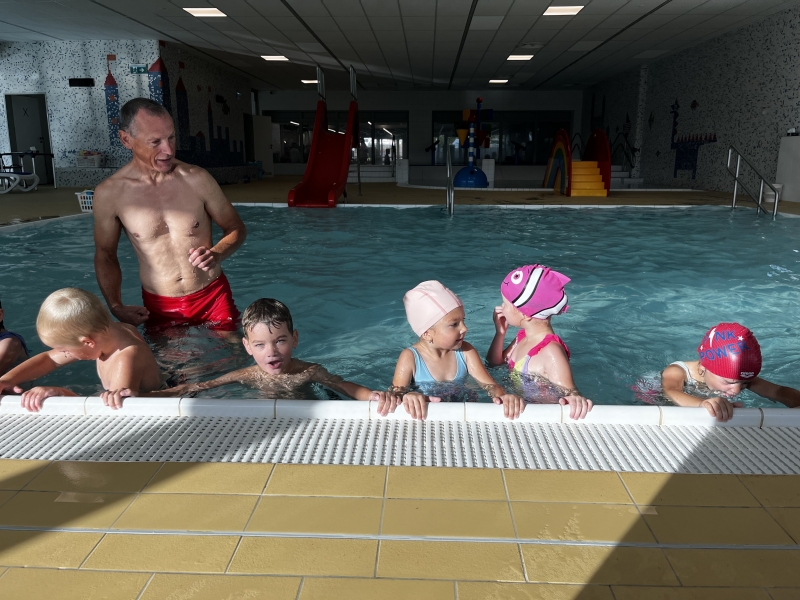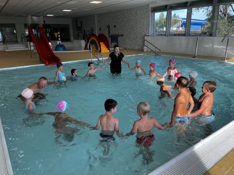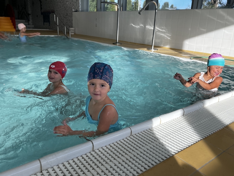 Naši předškoláci se vydali na první lekci plaveckého výcviku. Seznámili se s prostředím bazénu, vyzkoušeli si první cvičení a s nadšením zvládli své první plavecké krůčky.