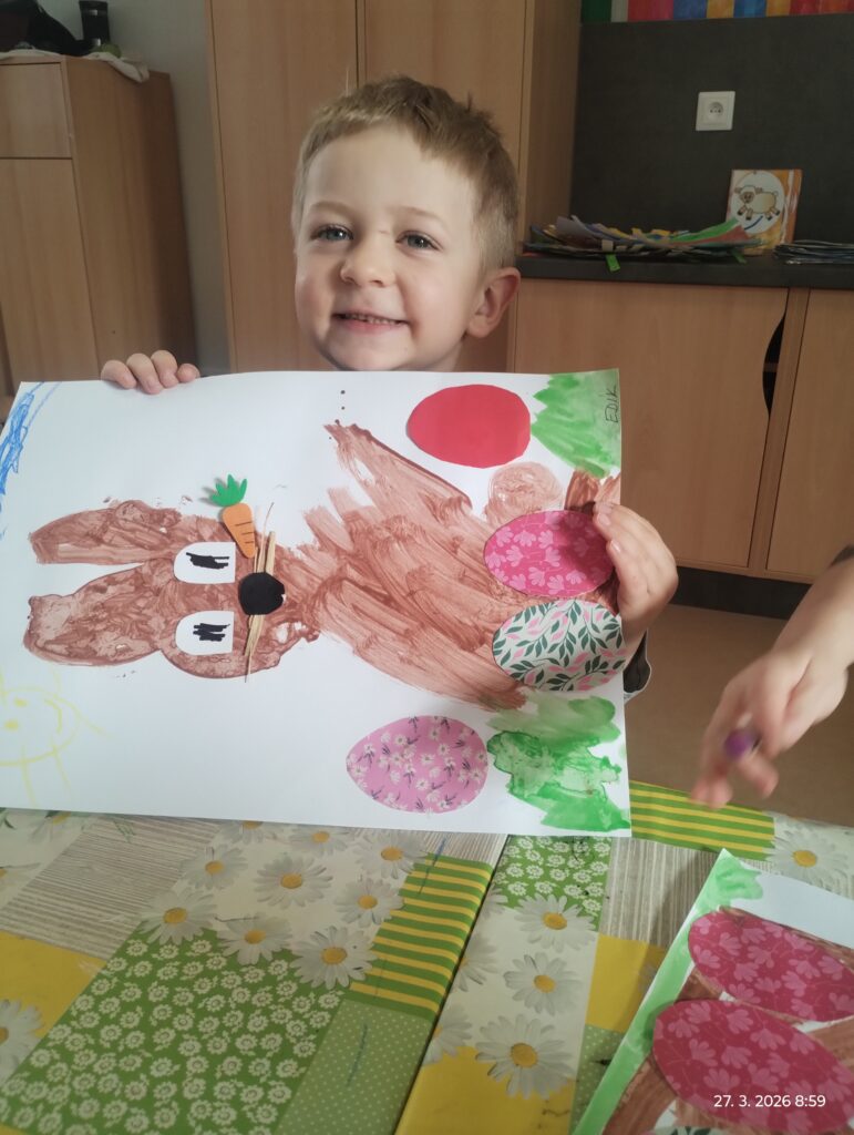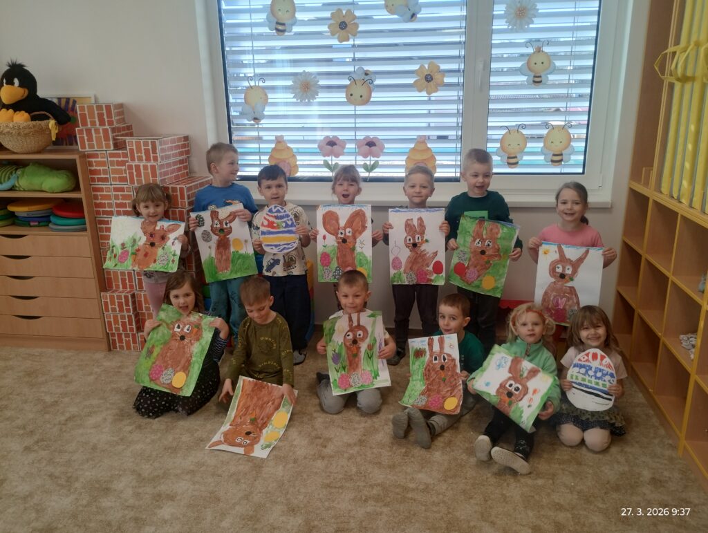 Velikonoce jsou v naší školce ve znamení příprav a chystání. Děti od Včeliček se pustily do práce s velkým nadšením a tvořivou energií! Naučily se zpaměti Zajíčkovu koledu a veselého zajíčka si zkusily samy namalovat. Během malování jsme se zaměřili na rozvoj jemné motoriky – pilovali jsme správný úchop štětce, zkoušeli různé tahy a učili se, jak správně pracovat s barvou a vodou. Vznikla tak celá zaječí rodinka, kde je každý kousek naprostý originál. Všechna tato povedená dětská díla jsme pečlivě naaranžovali a vyzdobili jimi prostory naší šatny. Až si půjdete pro své děti, určitě se na chvilku zastavte, nadechněte se jarní atmosféry a prohlédněte si naši malou galerii.